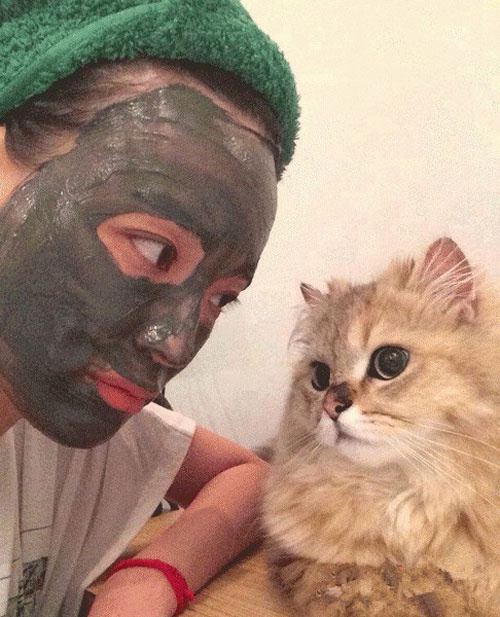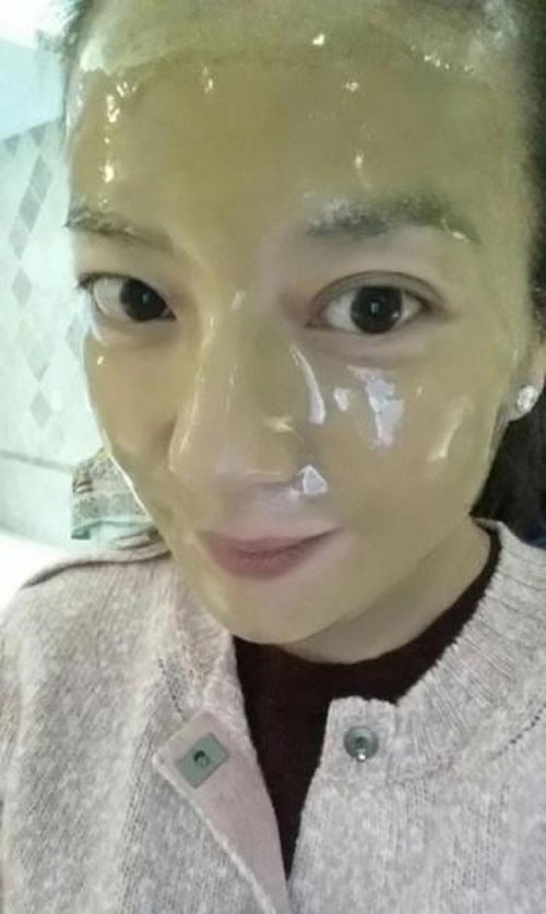 | Những ngôi sao nổi tiếng trên thế giới cũng bị cuốn hút vào trào lưu "làm xấu" khi đắp mặt nạ. Triệu Vy hào hứng khoe ảnh chăm sóc da trên mạng. |