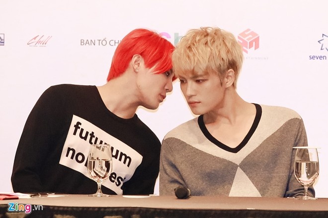 | hai thành viên Junsu và JaeJoong ( JYJ) trong buổi họp báo ở Việt Nam. |