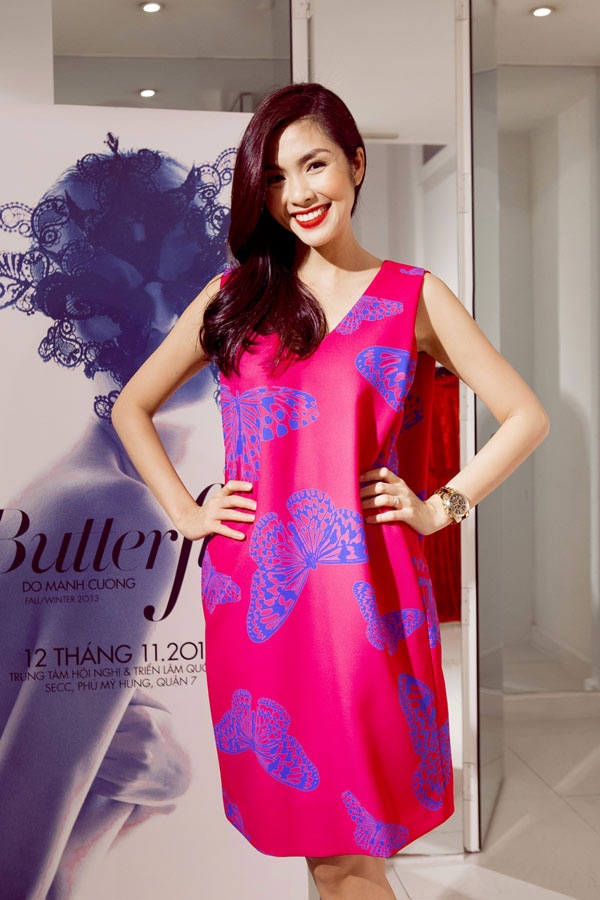 | Hà Tăng trong một thiết kế váy bướm với thân hình "trước sau như một". |