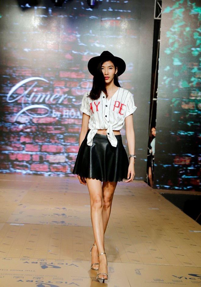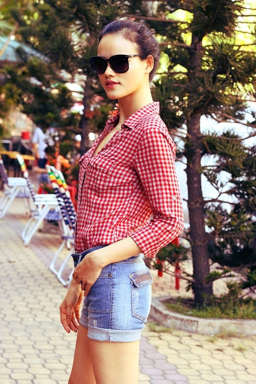 | Khi vòng một không là lợi thế thì Tuyết Lan chọn cách khoe chân và eo như những bạn bè VNTM cùng lứa. |