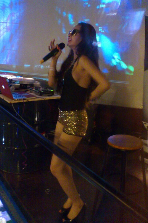 | Angela Phương Trinh với trang phục biểu diễn siêu nóng bỏng. Cô nàng lựa chọn chiếc quần hot pants đính sequin lấp lánh nổi bật. |