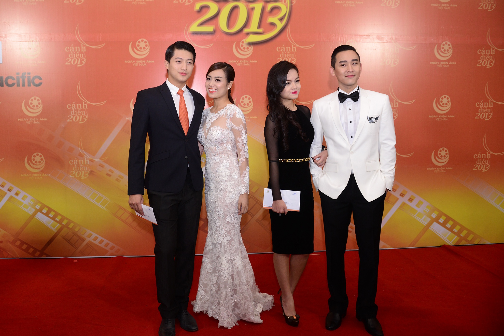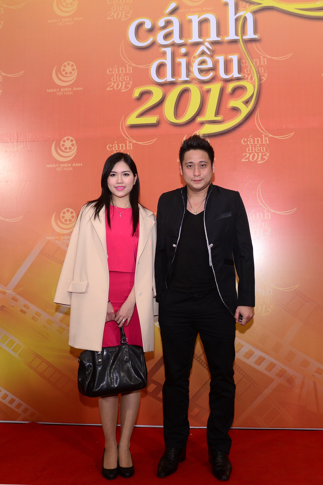 Quang Tuấn và Ngọc Lan rạng rỡ trước thềm buổi lễ Cánh diều 2013. Cặp trai tài gái sắc cũng chính là chủ nhân giải thưởng Nam/nữ diễn viên chính xuất sắc nhất cho hạng mục phim truyền hình.