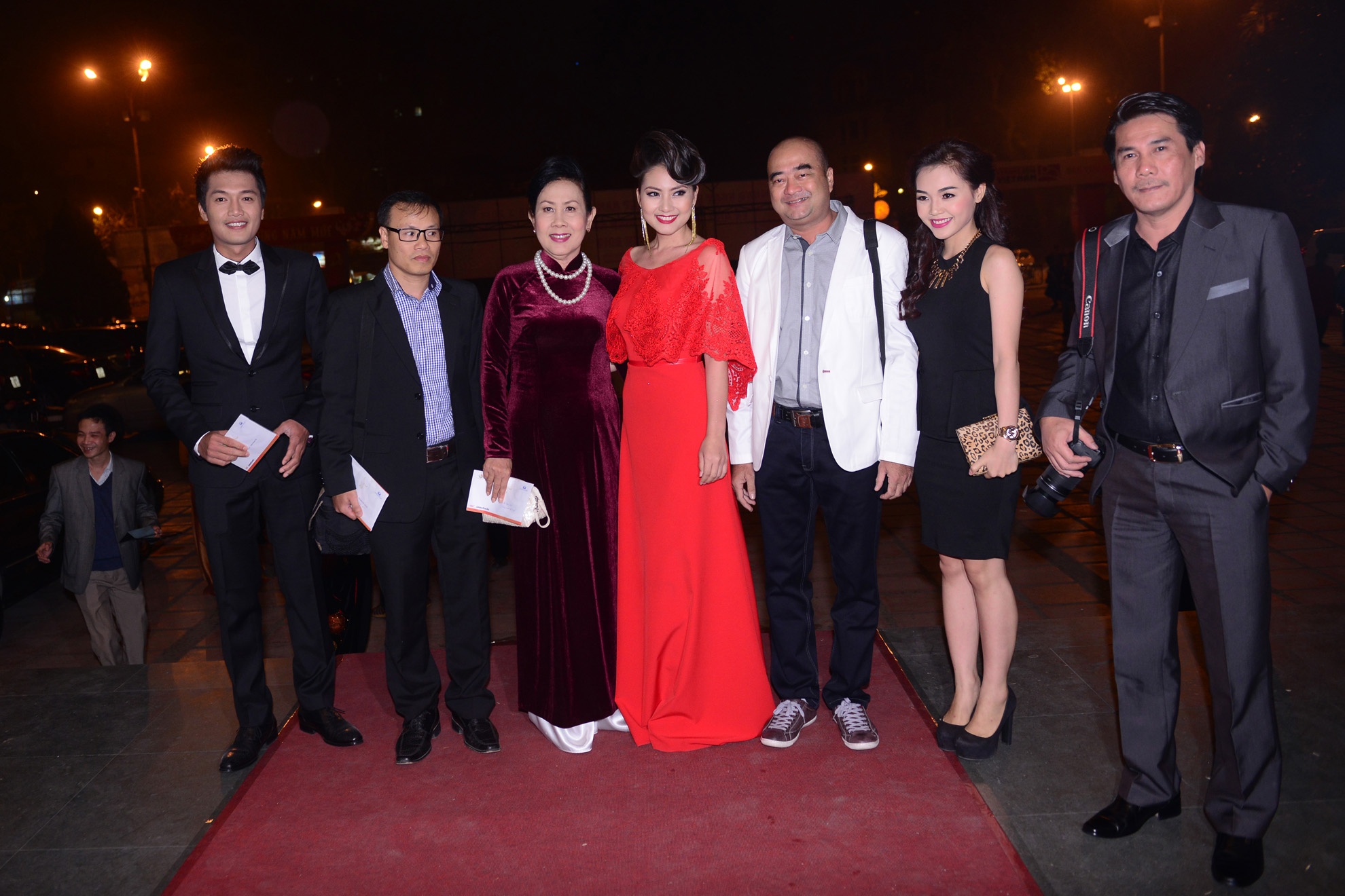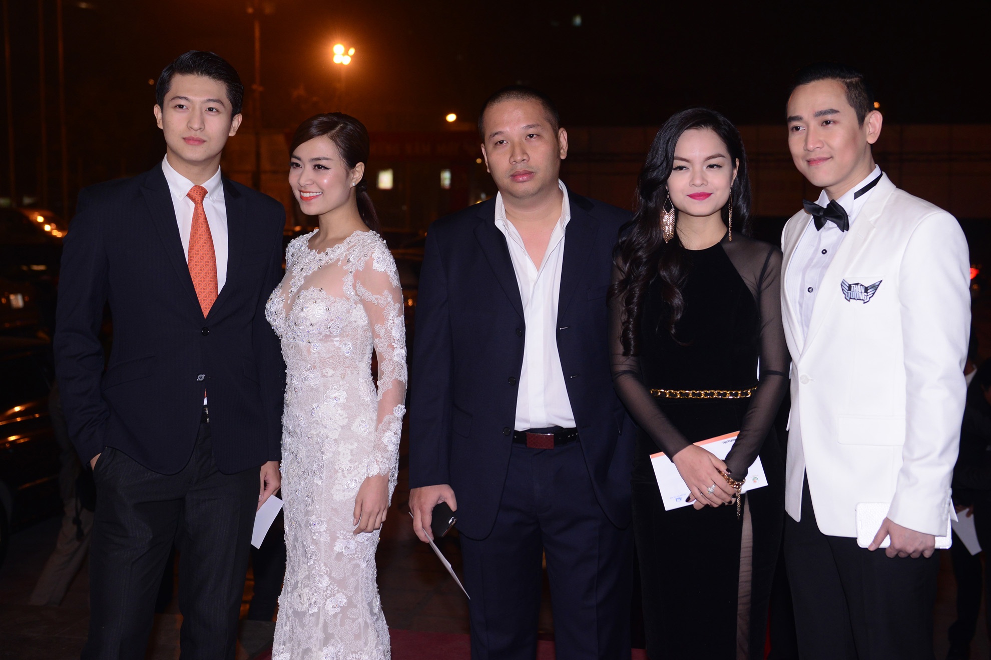 Đạo diễn Nguyễn Quang Huy và bà xã Quỳnh Anh đến dự buổi lễ với dàn diễn viên phim Thần tượng.