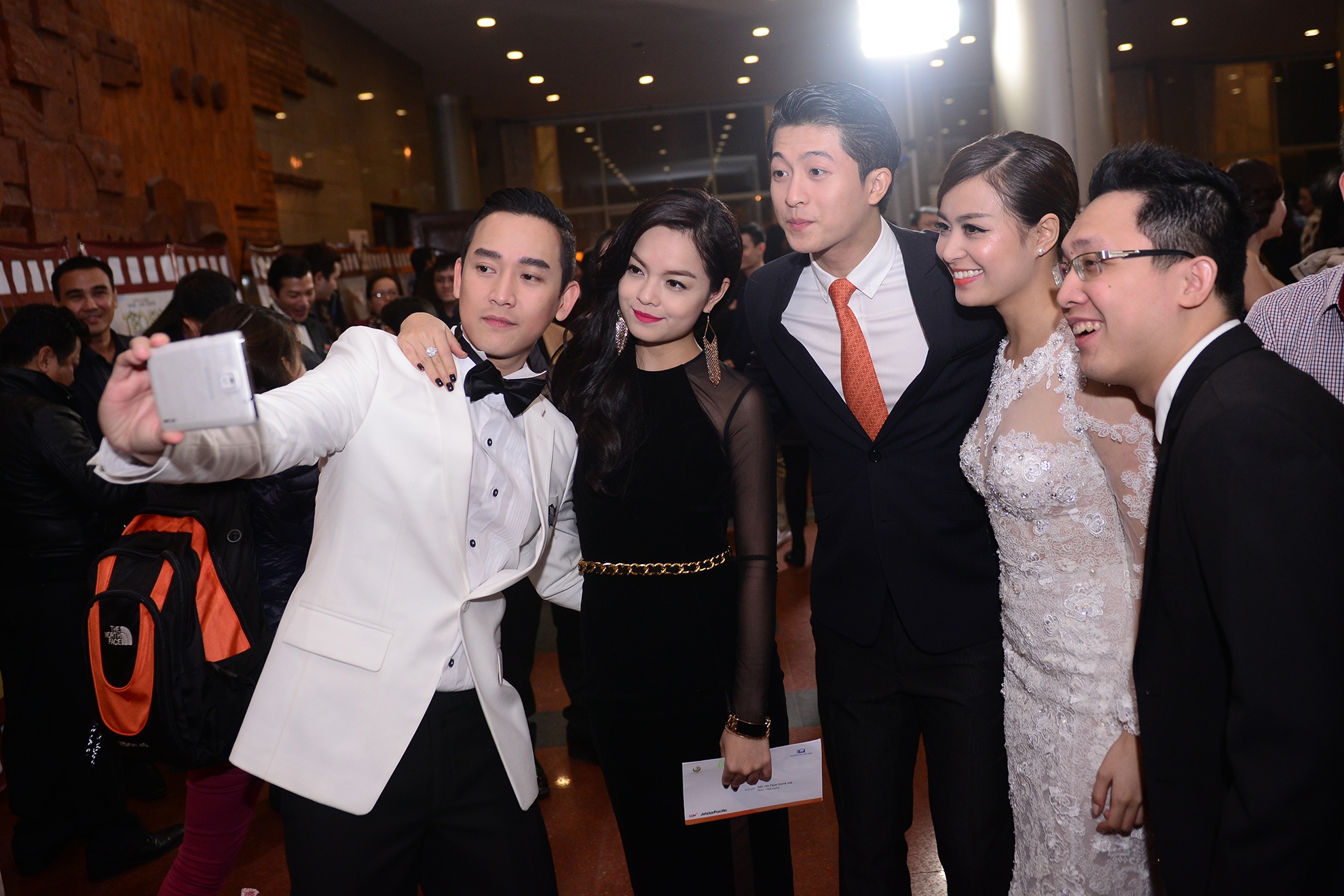 Dàn diễn viên phim Thần tượng vui vẻ chụp ảnh tự sướng trước khi chương trình bắt đầu.