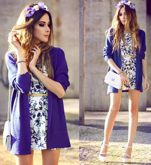 Cardgan mix khéo léo cùng chân váy hoa cho cô nàng nữ tính.