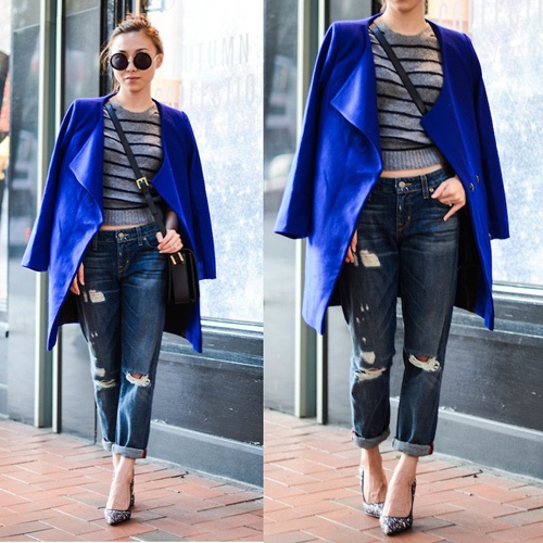 Nếu bạn là người yêu thích thời trang thì đừng bỏ qua sắc màu tuyệt vời này trong mùa thu. Với tiết trời chuyển thu, bạn có thể diện áo cardigan mỏng, blazer hay các kiểu áo khoác cá tính như miltary, moto jacket để khoe vẻ đẹp ấn tượng và không kém phần trẻ trung. Chiếc áo khoác xanh tạo điểm nhấn cho bộ trang phục đường phố hết sức đơn giản.