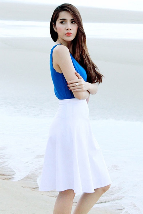 Hà Hồ trẻ trung với chân váy midi.