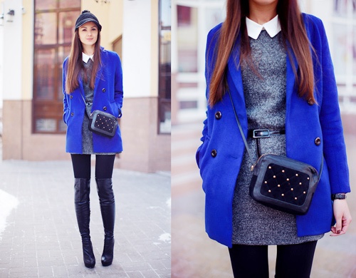 | Áo khoác dạ mỏng mix đẹp mắt cùng bốt cao cổ. |