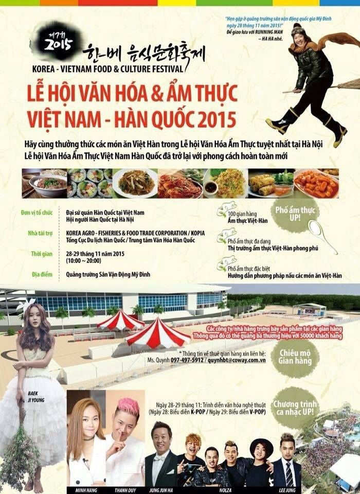 | Hình ảnh Haha và Baek Ji Young xuất hiện trên tờ quảng cáo cho Lễ hội Văn hóa & Ẩm thực Việt Nam - Hàn Quốc 2015. |
