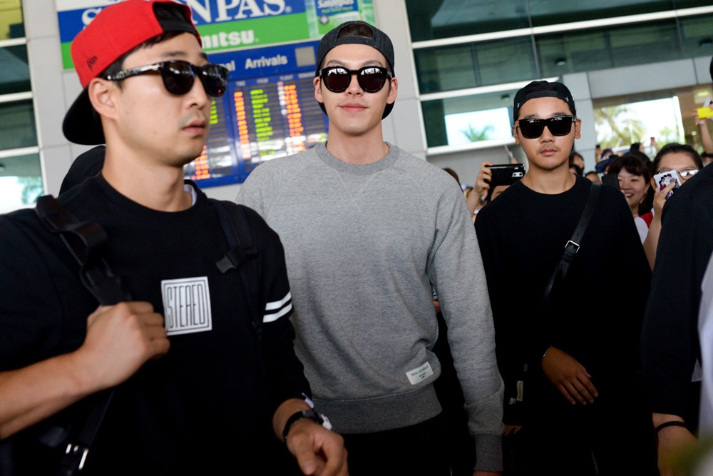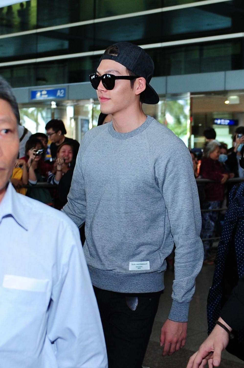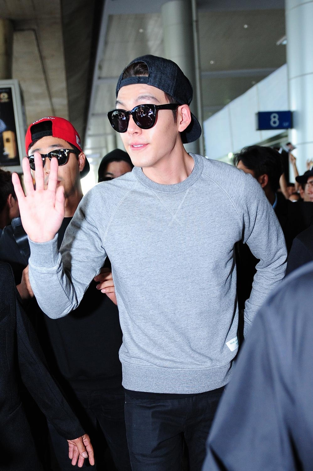 Không đi cửa VIP như các đồng nghiệp, nam tài tử Kim Woo Bin đi cửa thường và liên tục vẫy tay chào khán giả Việt vào chiều 17/9, tại sân bay Tân Sơn Nhất (TP.HCM).