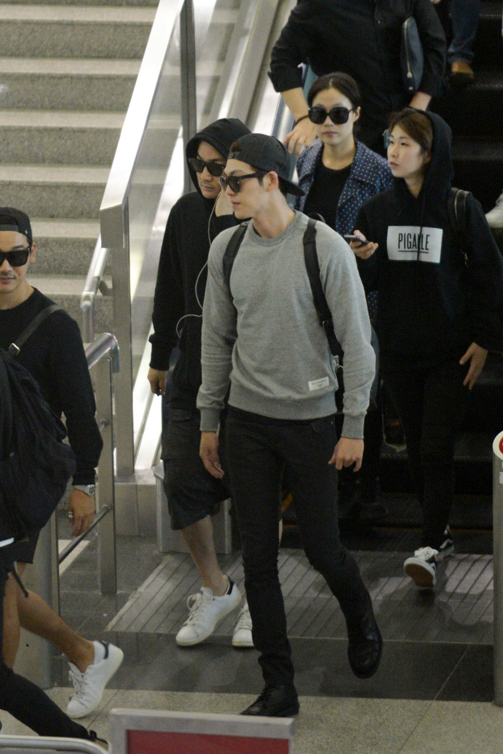| Có mặt tại sân bay, Woo Bin mặc trang phục đơn giản nhưng vẫn nổi bật bởi gương mặt nam tính. Nam diễn viên đeo kính râm và đội mũ ngược trông rất phong cách, cá tính. |