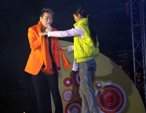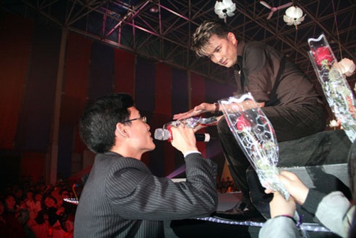 tình cảm nồng nhiệt. Trong tình huống khó xử, Mr. Đàm nửa đùa, nửa thật nói: “Ở đâu lên cướp diễn đàn thế này, tôi đâu có thuộc bài hát đó”, sau đó khéo léo vỗ về: “Cám ơn em rất nhiều. Nghe lời anh! Ngoan, nói là phải nghe lời, về chỗ ngồi, tý nữa anh gọi lên sau”, khán giả này mới chịu đi xuống. |