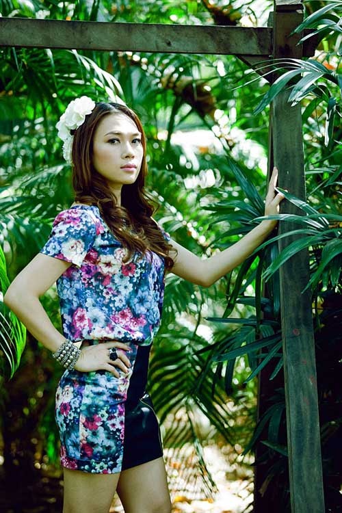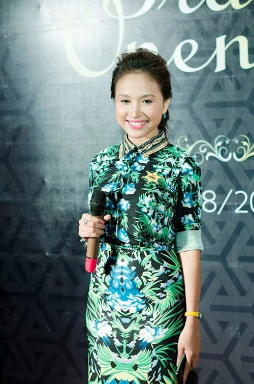 | Mỹ Tâm tươi trẻ hơn với cây họa tiết hoa lá. |