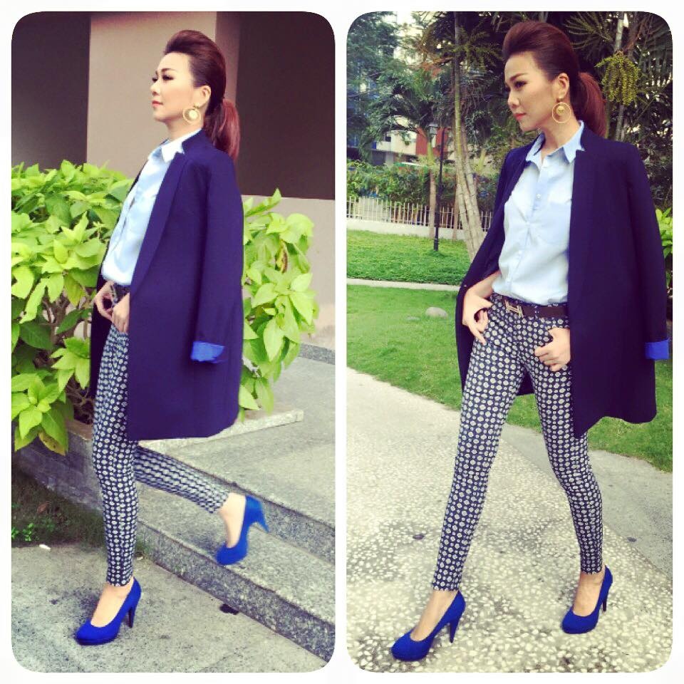 | Có thể thấy, Thanh Hằng là một trong những tín đồ của xu hướng này. Cô chuộng cách mix áo khoác hờ từ sự kiện cho đến dạo phố. Với phong cách street style, người đẹp chọn áo vest mỏng. Trong ảnh, set trang phục ton-sur-ton gam xanh cobalt được siêu mẫu phối ăn ý từ trang phục đến phụ kiện. |