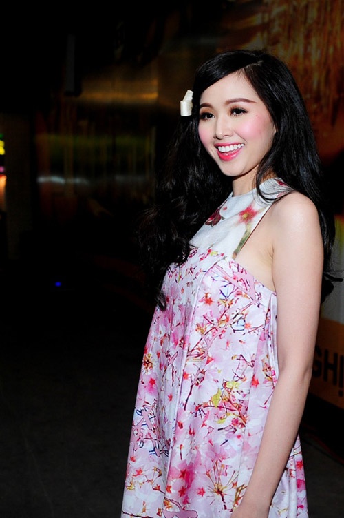 | Thanh Hằng trong một sự kiện mới nhất với chiếc đầm xinh xắn điểm xuyết những bông hoa hồng. |