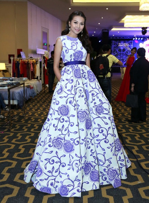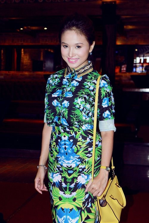 | Thu Hằng chứng tỏ đẳng cấp với chiếc đầm hoa xanh hàng hiệu. |