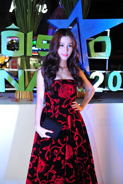 | Với chiếc đầm đen in hoa hồng rực rỡ, Diễm My 9x trở nên sang trọng và quyến rũ. |