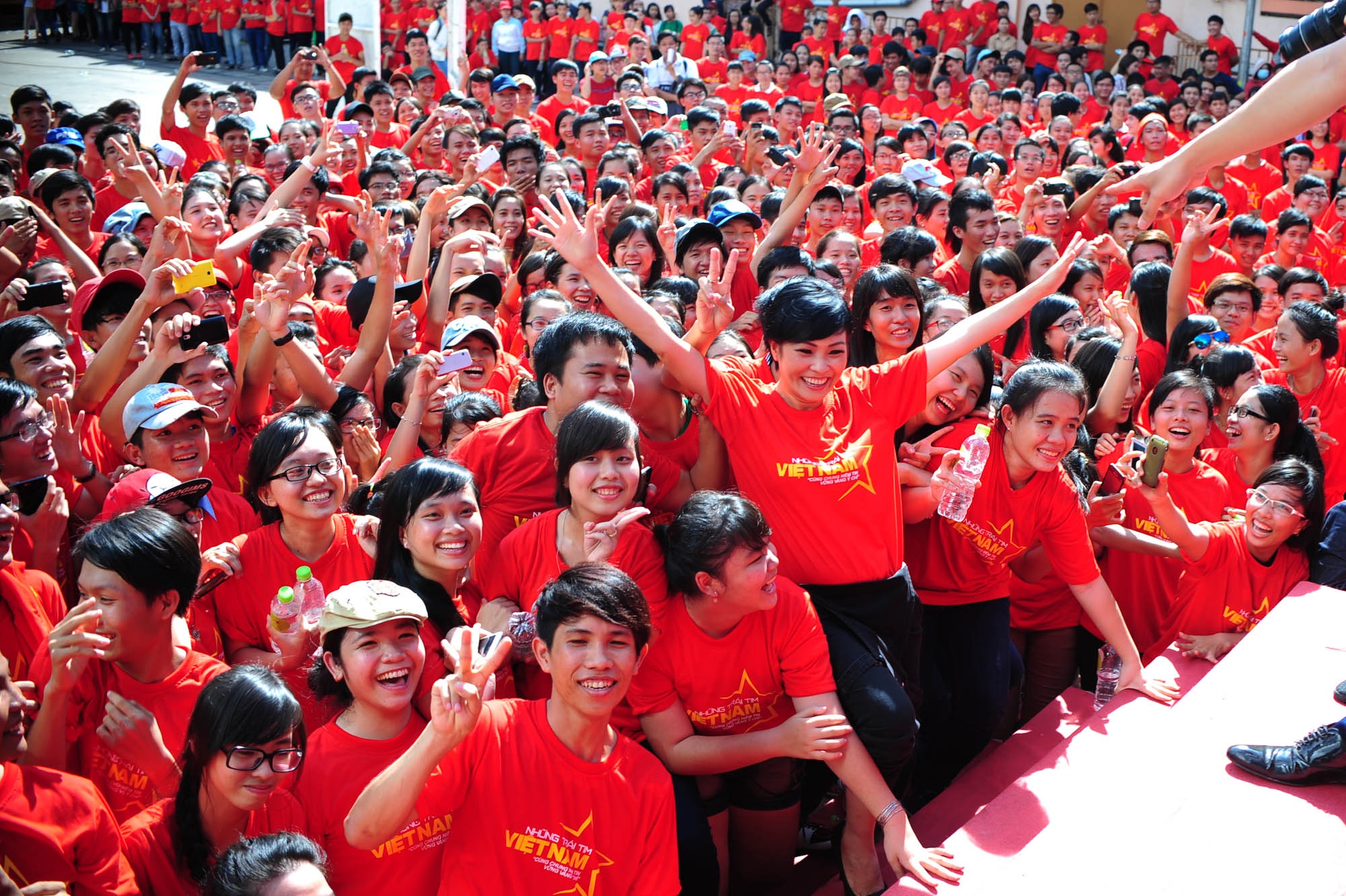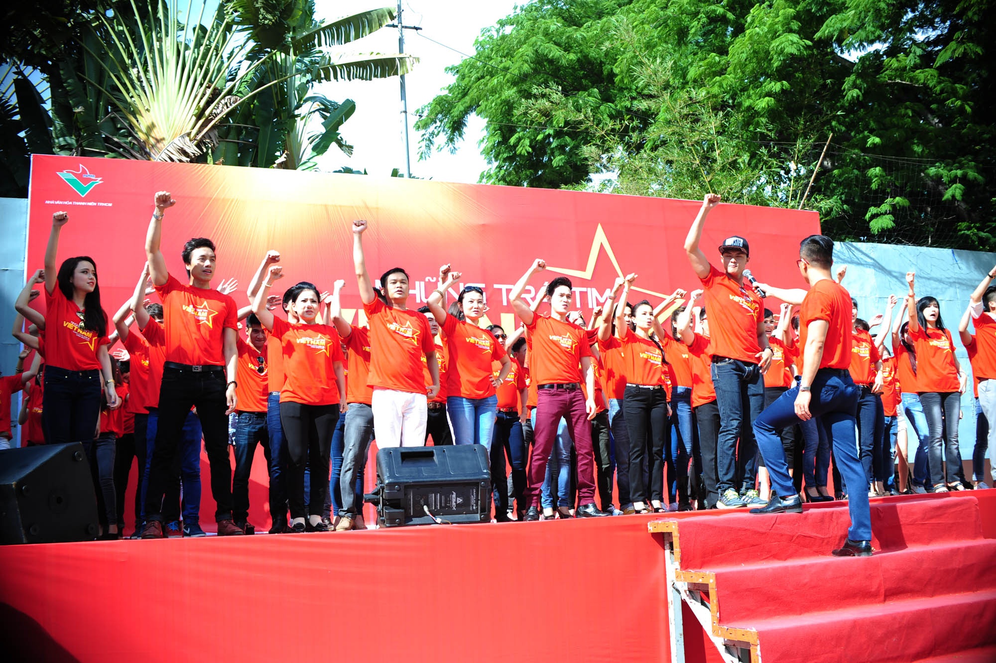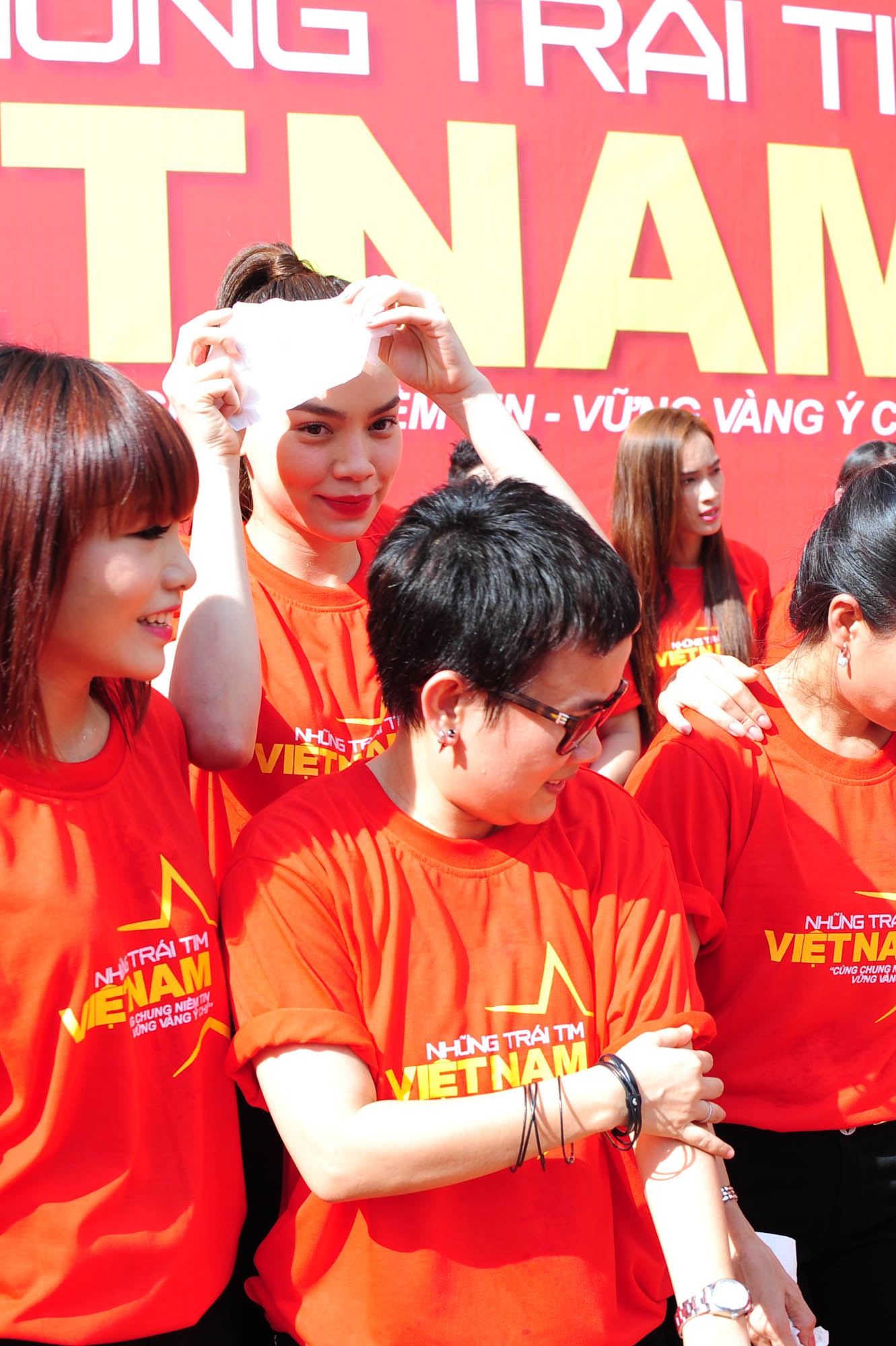 | Ngày 20/5, dưới cái nắng của buổi ban trưa, gần 100 nghệ sĩ Việt và 1000 sinh viên đến từ 5 trường đại học đã cùng nhau tham gia buổi ghi hình cho MV Những trái tim Việt Nam - dự án cộng đồng hướng về Biển Đông do nhạc sĩ Phương Uyên khởi xướng. |