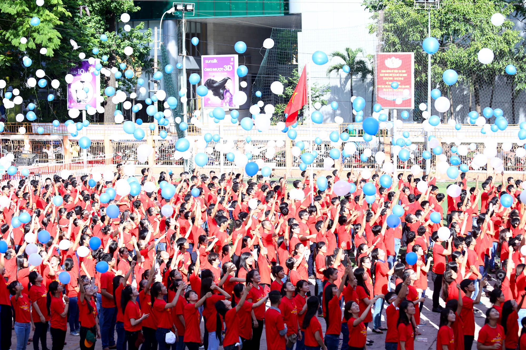 | Sinh viên 5 trường đại học cùng lúc thả lên bầu trời những chiếc bóng bay tạo nên khung cảnh đẹp mắt. |