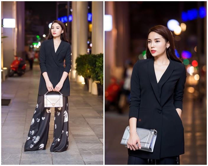 | Bắt nhịp dòng chảy xu hướng, Kỳ Duyên từng chọn bộ cánh phong cách thập niên 1970 của NTK Adrian Anh Tuấn khi dự buổi tiệc khai chương chi nhánh mới. Thiết kế đáp ứng tính trào lưu với tông màu tối, quần ống loe họa tiết trái tim. Ảnh: Chí Linh |