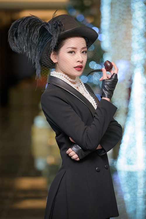 | Chi Pu hóa quý cô cổ điển trong set đồ của Phạm Đăng Anh Thư. Bộ cánh phối đồng chất liệu, phụ kiện mũ cổ điển, găng tay và chuỗi hạt hợp phong cách. Ảnh: Pencil |