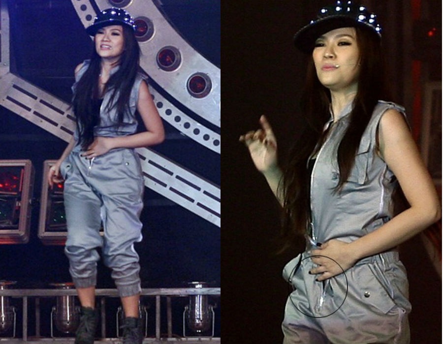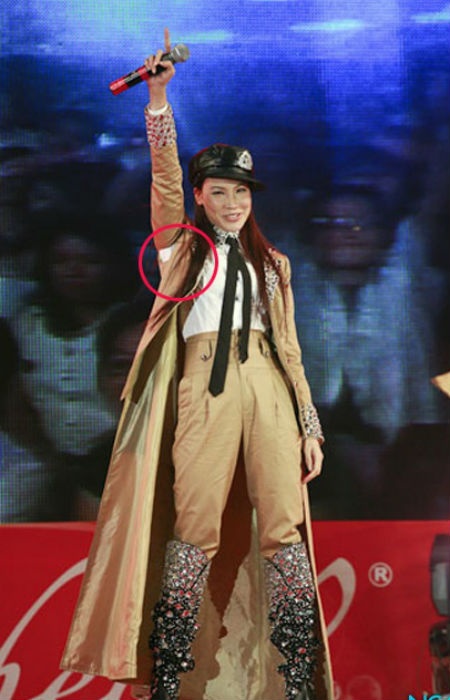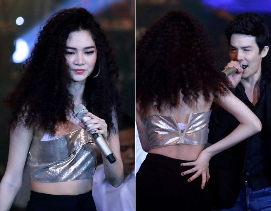 Trong khi nhiều nam ca sĩ "méo mặt" vì rách quần đúng chỗ hiểm, các giọng ca nữ cũng "ngượng chín" vì tuột áo, bung cúc ở điểm nhạy cảm ngay trên sân khấu.