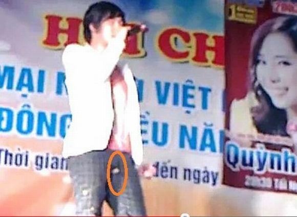 Nữ ca sĩ Thu Thủy từng "méo mặt" khi đang biểu diễn sung trên sân khấu thì khóa quần bất ngờ bị tuột. Dẫu vậy, cô vẫn bình tĩnh giữ trang phục và tiếp tục tiết mục của mình.