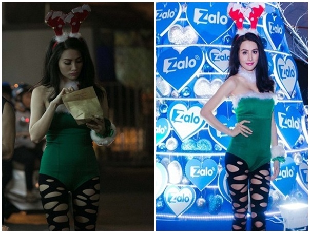 | Trước đó, cô từng trưng diện kiểu quần rách "te tua" khi cùng bạn trai cũ góp mặt ở một chương trình ca nhạc. Mốt quần rách được nhiều sao Việt ưa chuộng được mix kèm áo crop-top hở mạnh bạo không mang lại hình ảnh đẹp mắt cho người mẫu Hà thành. |
