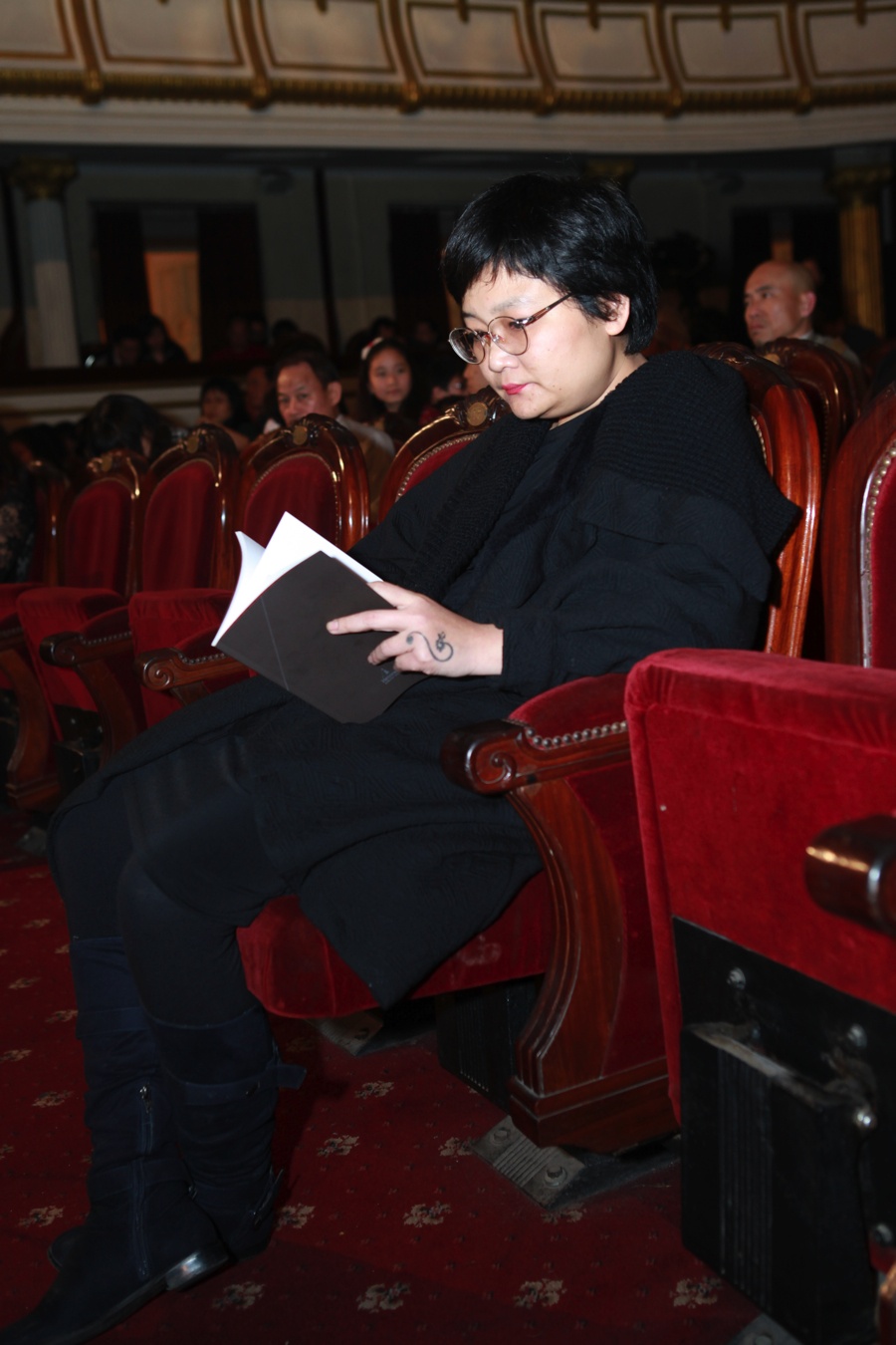 | Nghệ sĩ Phó An My chăm chú xem các thông tin về chương trình trước buổi hòa nhạc Hennessy Concert 18. |