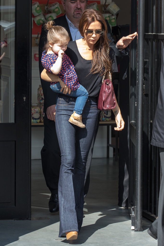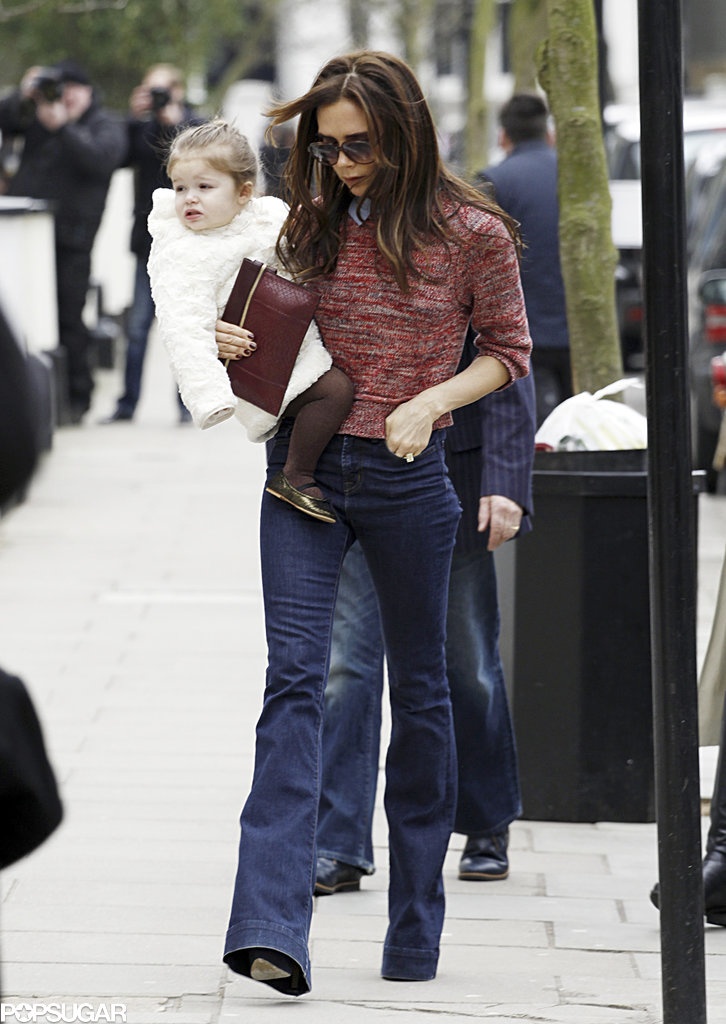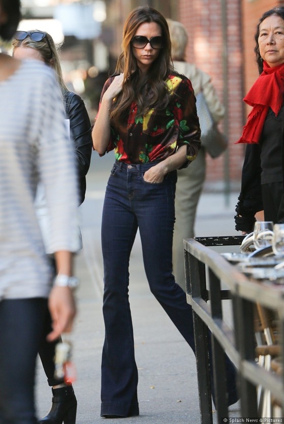 | Trong khi thế giới quay lưng lại với quần jeans ống loe thì Vic vẫn coi đây là "món tủ" của mình. |