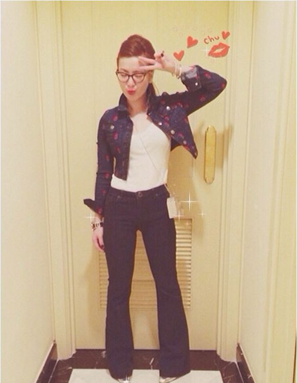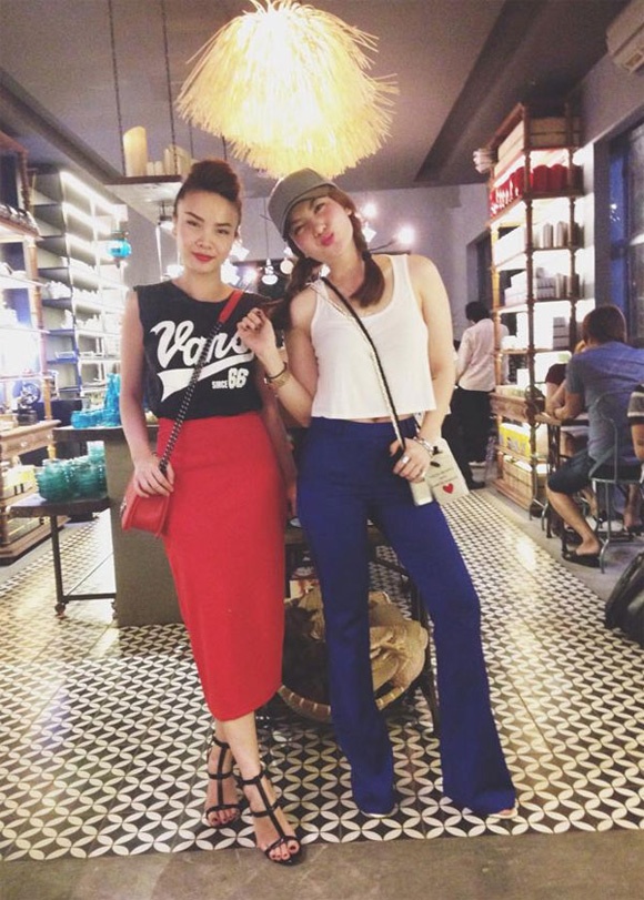 | Cô thường xuyên mix kèm các mẫu áo thun trẻ trung. |