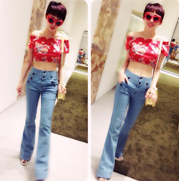 Đối với sao Việt, trong khi mốt quần jeans skinny hay boyfriends vẫn đang thịnh hành thì sự quay lại với mốt quần jeans ống loe như là một cách làm mới đầy thu hút. Và đặc biệt, những set đồ trẻ trung của họ khiến cho kiểu quần hippy này trở nên rất tươi mới và hiện đại.