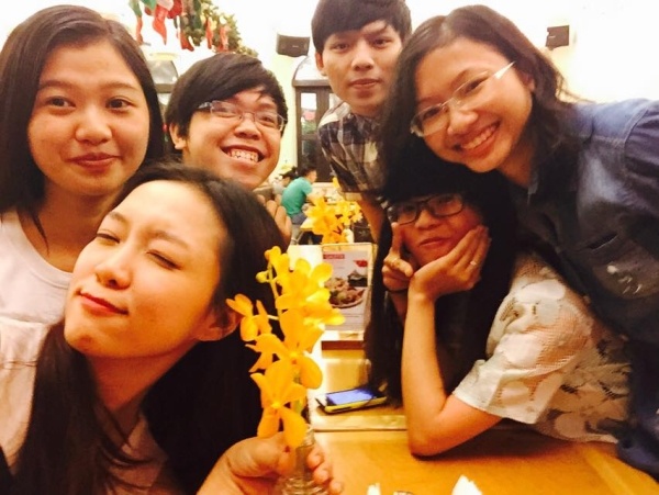 | Ca sĩ Đinh Hương nhí nhảnh wefie cùng bạn bè. |