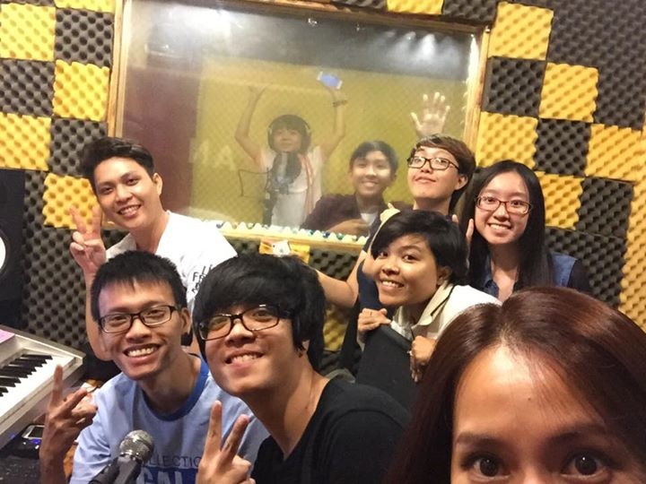 | Bùi Anh Tuấn đóng góp bức ảnh với 9 người tham gia trong một buổi thu âm. |