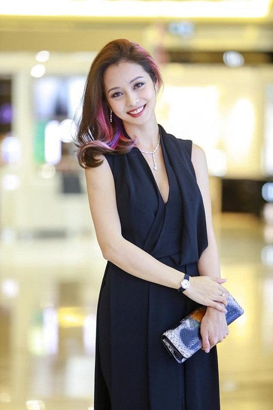 Ombre hay còn gọi màu loang, là một trong những xu hướng thời trang hút giới trẻ mùa hè 2015. Mốt tóc này mang đến sự mới mẻ, hấp dẫn và cuốn hút cho người sử dụng. Vẻ đẹp nữ tính của Jennifer Phạm thêm phần cá tính nhờ mái tóc line tím hồng.