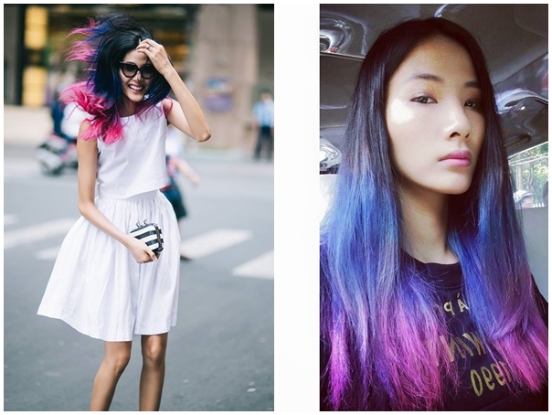 Suốt mùa hè 2015, nhiều ngôi sao làng giải trí Việt đã ứng dụng mốt tóc màu loang để tạo sự khác biệt cho phong cách.