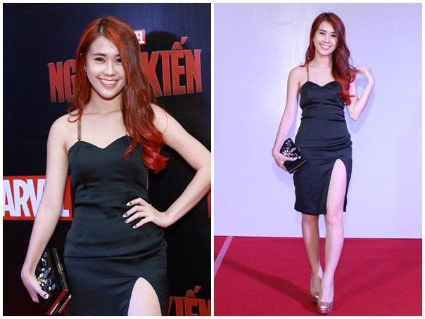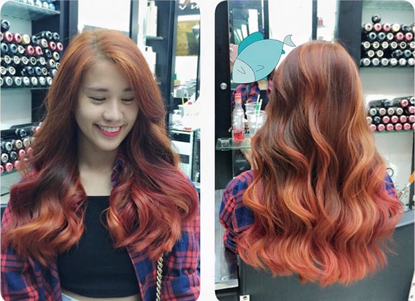 | Hot girl Ngọc Thảo hy sinh mái tóc đen dày để chọn kiểu tóc màu loang đỏ cam ấn tượng. Nữ diễn viên tạo sức hút với kiểu tóc xoăn bồng bềnh quyến rũ. |