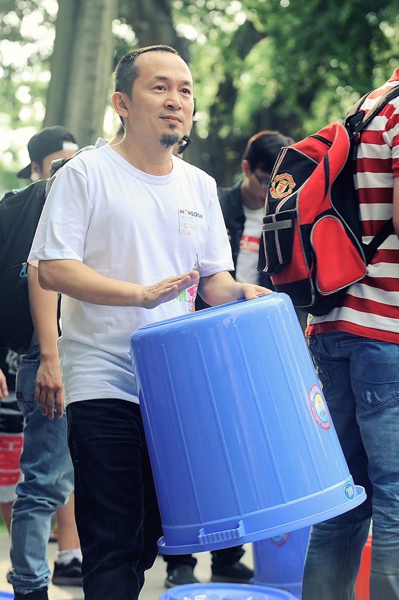 | Trong khi đó, Quốc Trung lại hào hứng với việc dùng xô nhựa để tạo nên các âm thanh thay thế cho những nhạc cụ chuyên dụng. Với vai trò tổng đạo diễn chương trình, nhạc sĩ Quốc Trung khẳng định: “Âm nhạc và môi trường cũng có những sợi dây liên kết với nhau, đó chính là thái độ của chúng ta. Môi trường không phải là điều gì to tát, mà chính là tất cả những gì xung quanh chúng ta. Bảo vệ và giữ gìn nó, cũng là bảo vệ cuộc sống của chính mình”. |