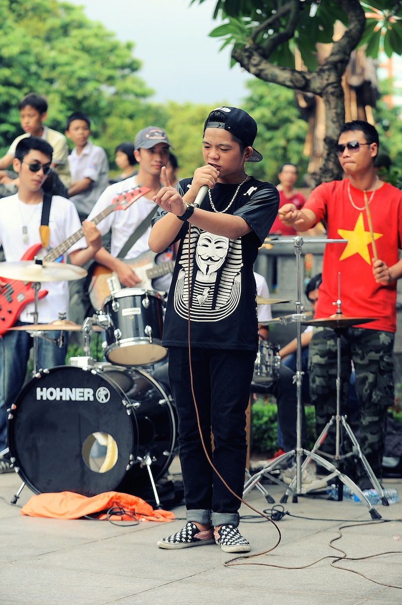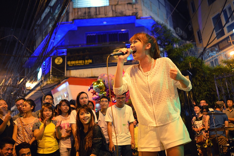 | Trong khuôn khổ các hoạt động bên lề của Lễ hội âm nhạc đường phố Gió mùa, tối 21/9, các nghệ sĩ trẻ đã có buổi biểu diễn sôi nổi tại khu vực phố đi bộ Lương Ngọc Quyến - Tạ Hiện. |