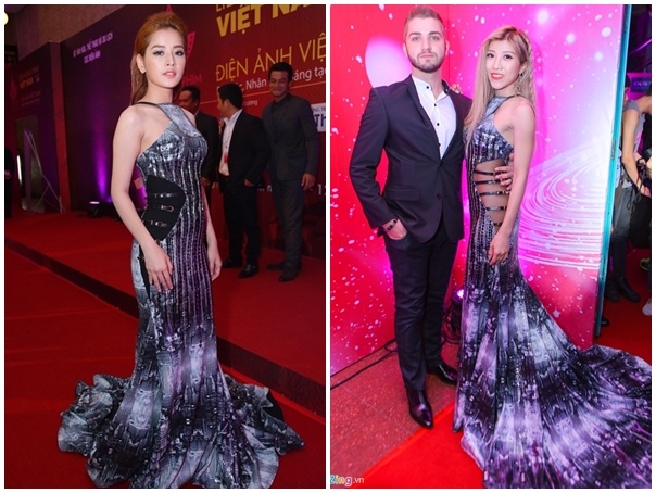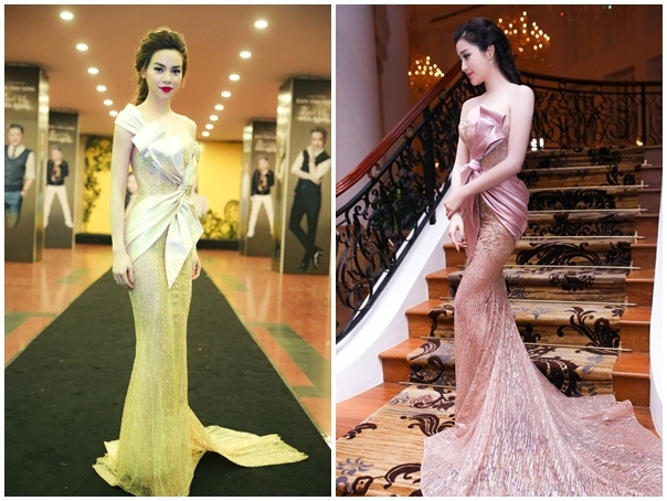 | Thiết kế của Phạm Đăng Anh Thư đưa Hồ Ngọc Hà vào nhóm sao đẹp tuần. Trước đó, Huyền My chọn trang phục tương tự chỉ khác về màu sắc khi dự sự kiện phía Nam. Ảnh: Pencil |