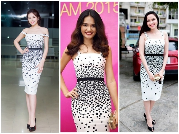 | Tham dự sự kiện tại Hà Nội vào trung tuần tháng 12, Kỳ Duyên chọn váy ôm dáng, điểm hoạ tiết chấm bi thanh lịch. Trước đó, Hương Giang từng diện trang phục tương tự khi làm giám khảo vòng casting Hoa hậu Hoàn vũ Việt Nam phía Bắc. Hoa hậu thế giới người Việt Diễm Hương là người đầu tiên sở hữu thiết kế này. Ảnh: Oscar, Unicorp, ĐQ |