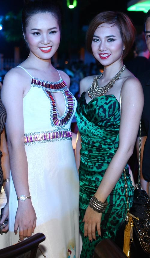 | Trong một sự kiện chung với Ngọc Diệp, Á hậu Thụy Vân trở thành tâm điểm chú ý khi diện bộ đầm trắng khoét cổ sâu khoe vòng một đầy đặn. |
