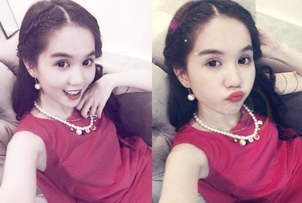 | Ngọc Trinh lại chuộng phong cách đơn giản, sang trọng với váy liền và vòng cổ làm điểm nhấn. Trong hình này, cô chọn phố váy trơn màu đỏ ngọt ngào cùng phụ kiện ngọc trai sang trọng và kiểu tóc tết mái nữ tính. |