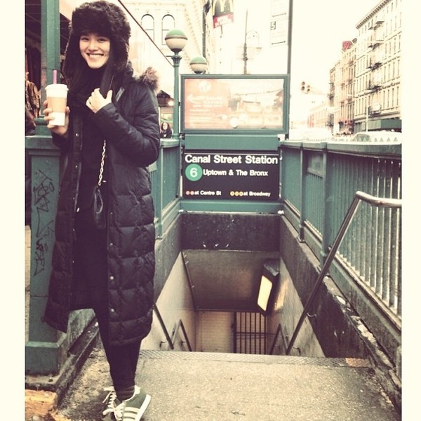 | Tuyết Lan chọn cho mình áo phao dáng dài, phối cùng skinny jeans và giày thể thao để chống chọi với cái lạnh NewYork. Với lợi thế là thân hình chuẩn mực, set đồ này không hề làm khó cô nàng mà ngược lại, mang đến một cái nhìn rất trẻ trung và tinh nghịch. |