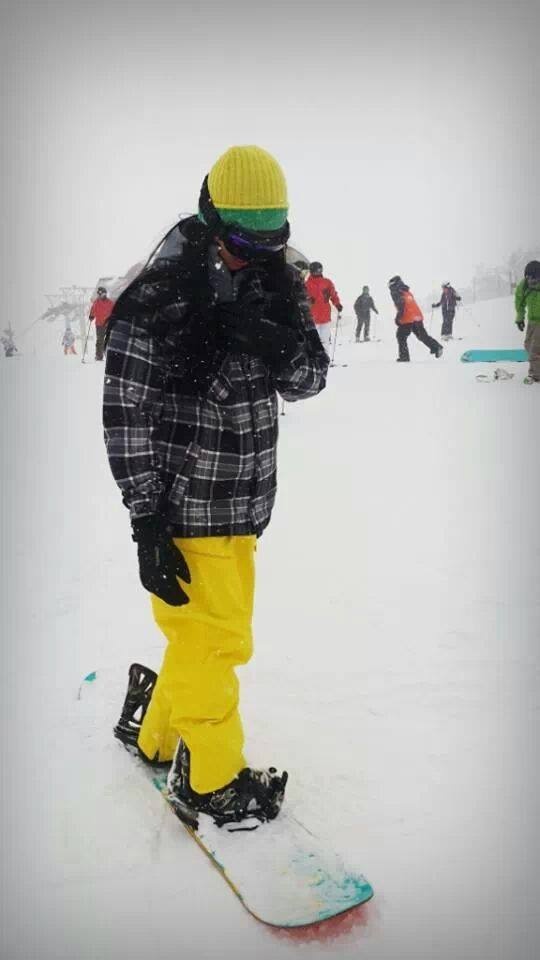 | Ngô Thanh Vân khoe hình phong cách khi đi trượt tuyết, với quần vàng và áo khoác kẻ. Dù lạnh nhưng vẫn phải thật thời trang. |