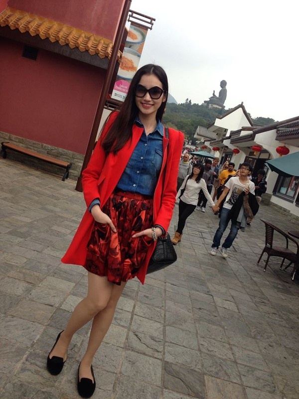 | Tết đến nên cô nàng cũng không ngại diện thật nhiều sắc đỏ. Với áo khoác dáng dài phối cùng chân váy họa tiết đỏ, Trúc Diễm chọn thêm chiếc sơ mi denim để tạo độ "nghỉ" cho bộ đồ, khiến set đồ vừa mắt, hài hòa hơn. |