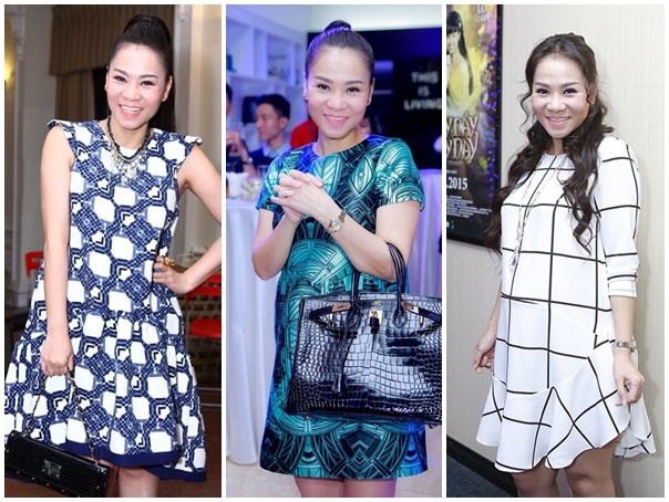 Thời trang bầu của Thu Minh ở tháng thứ 7 hướng đến phong cách tối giản, nhẹ nhàng nhưng cũng không kém phần hiện đại. Trong ảnh là những bộ váy suông họa tiết được Thu Minh yêu thích và trưng diện khi dự các chương trình lớn nhỏ trong những tháng đầu năm 2015.