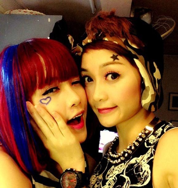 | Mốt 'đầu xanh, đầu đỏ' rất hợp với nữ ca sĩ cá tính.