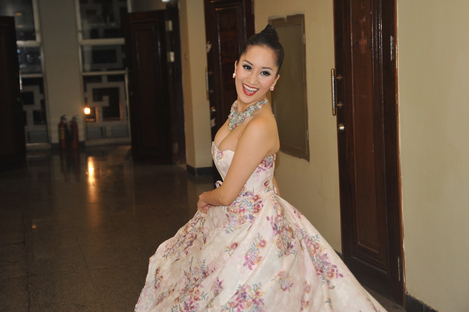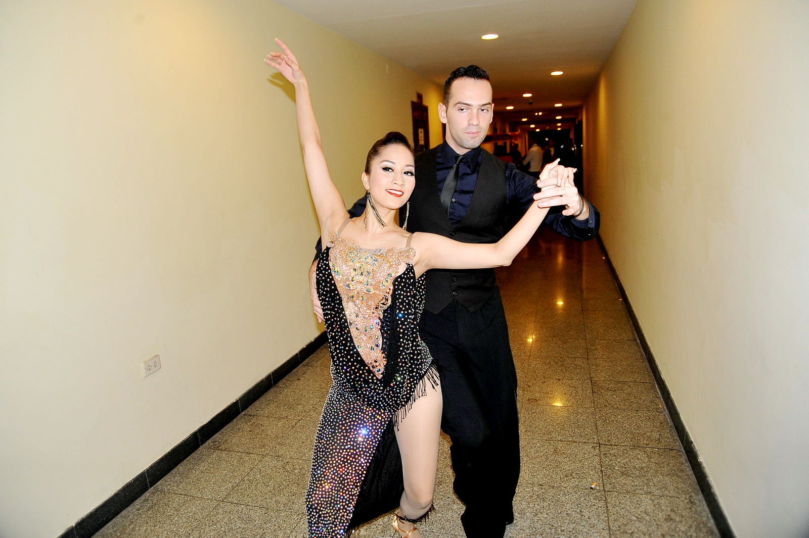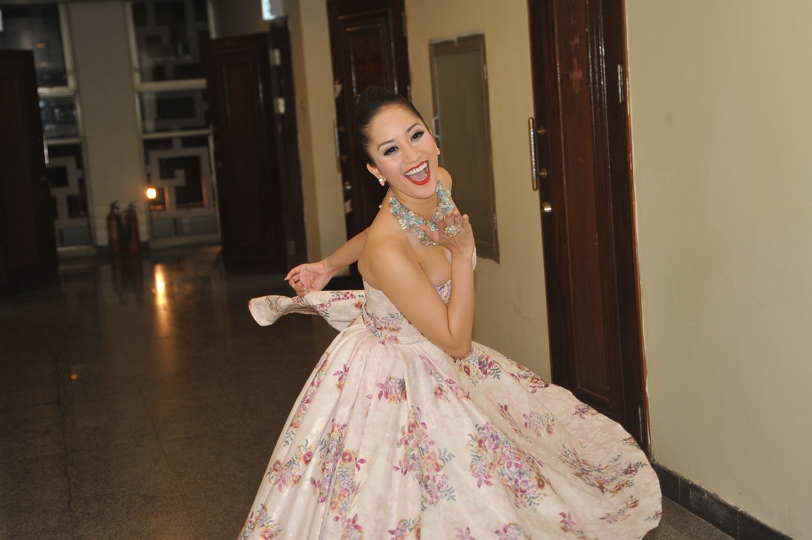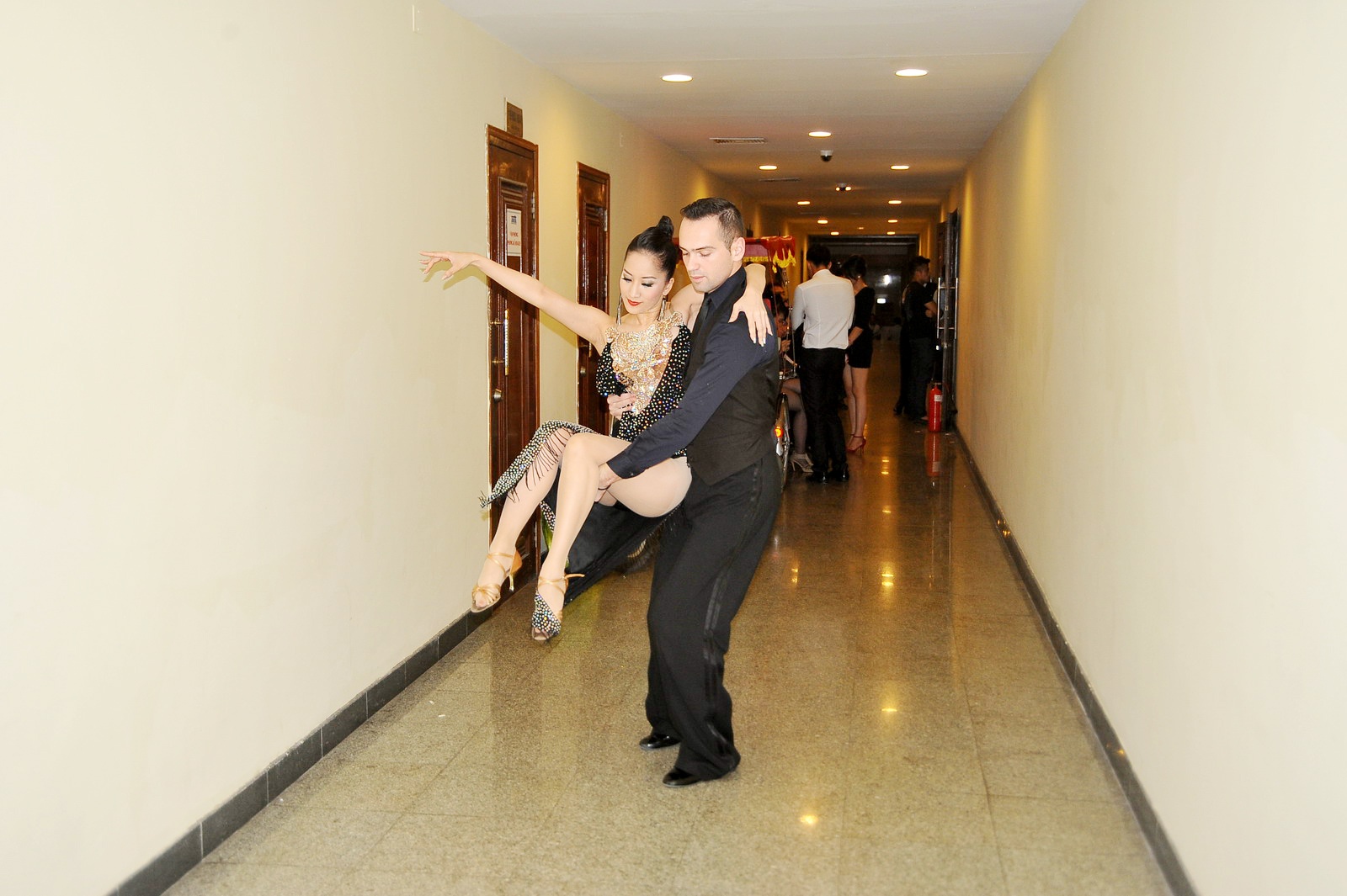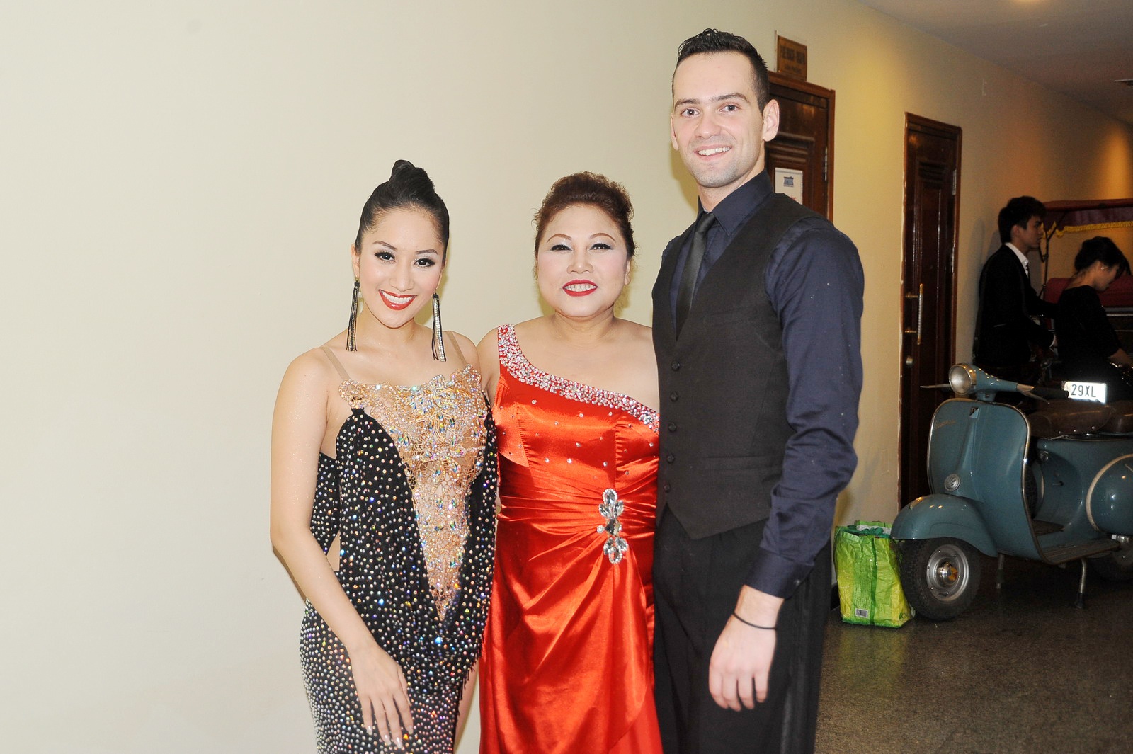 | Khánh Thi tập dợt lại phần trình diễn của mình và bạn diễn. |