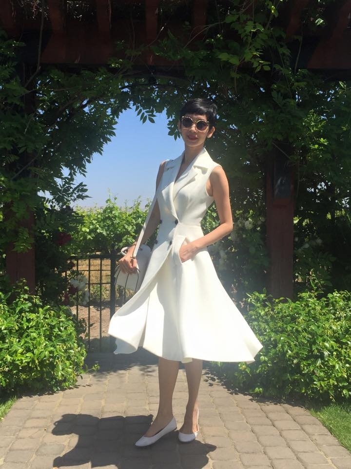 | Hà Hồ gây bất ngờ với mẫu váy sơ mi low high nhẹ nhàng, tinh tế. |